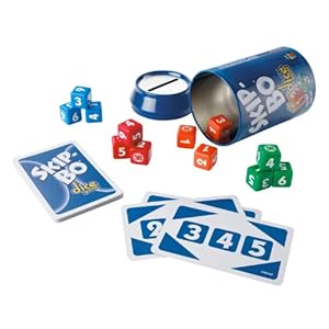 Skip-Bo Dice Game: An exciting new twist around the classic card game. Skip-Bo meets speed on this fast, fun, different way to play. Quickly roll and re-roll the Skip-Bo Dice to match the Skip-Bo Mission Cards. Be the first to get five cards to win the game. Includes 12 dice, 17 Skip-Bo cards and instructions. Great family game for 2-4 players.